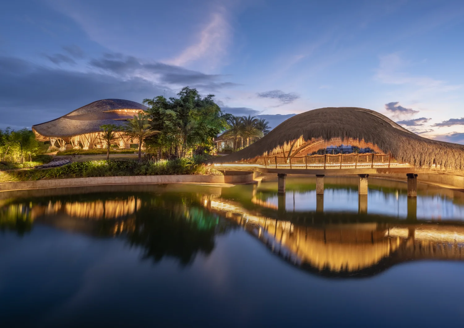 Engineered bamboo arches and hybrid structural systems demonstrate how traditional materials can meet contemporary performance standards. The park acts as both environmental sanctuary and educational platform, showcasing bamboo as a scalable solution for tropical architecture across Southeast Asia.